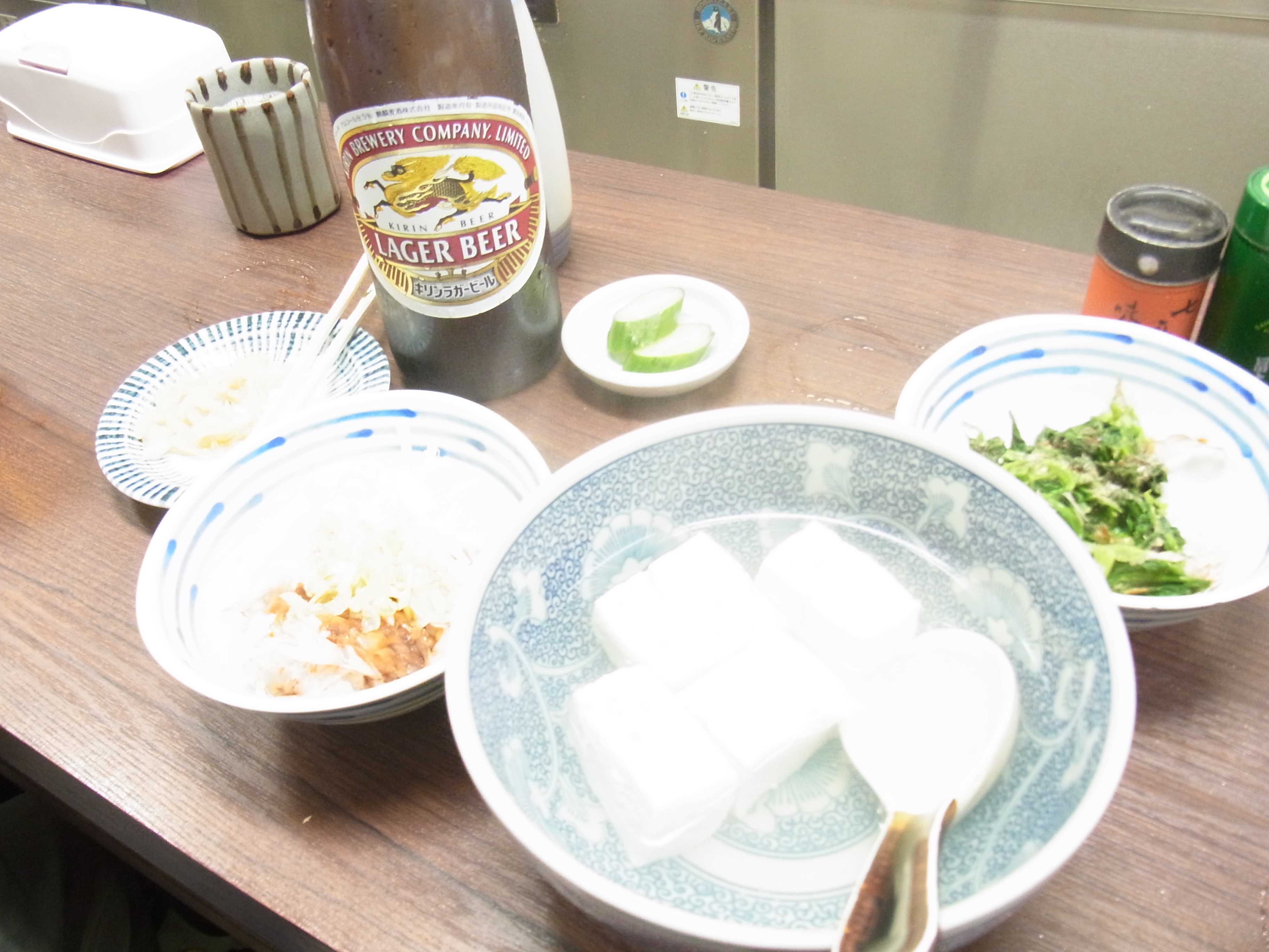 瓶ビールに湯豆腐にお浸しね。