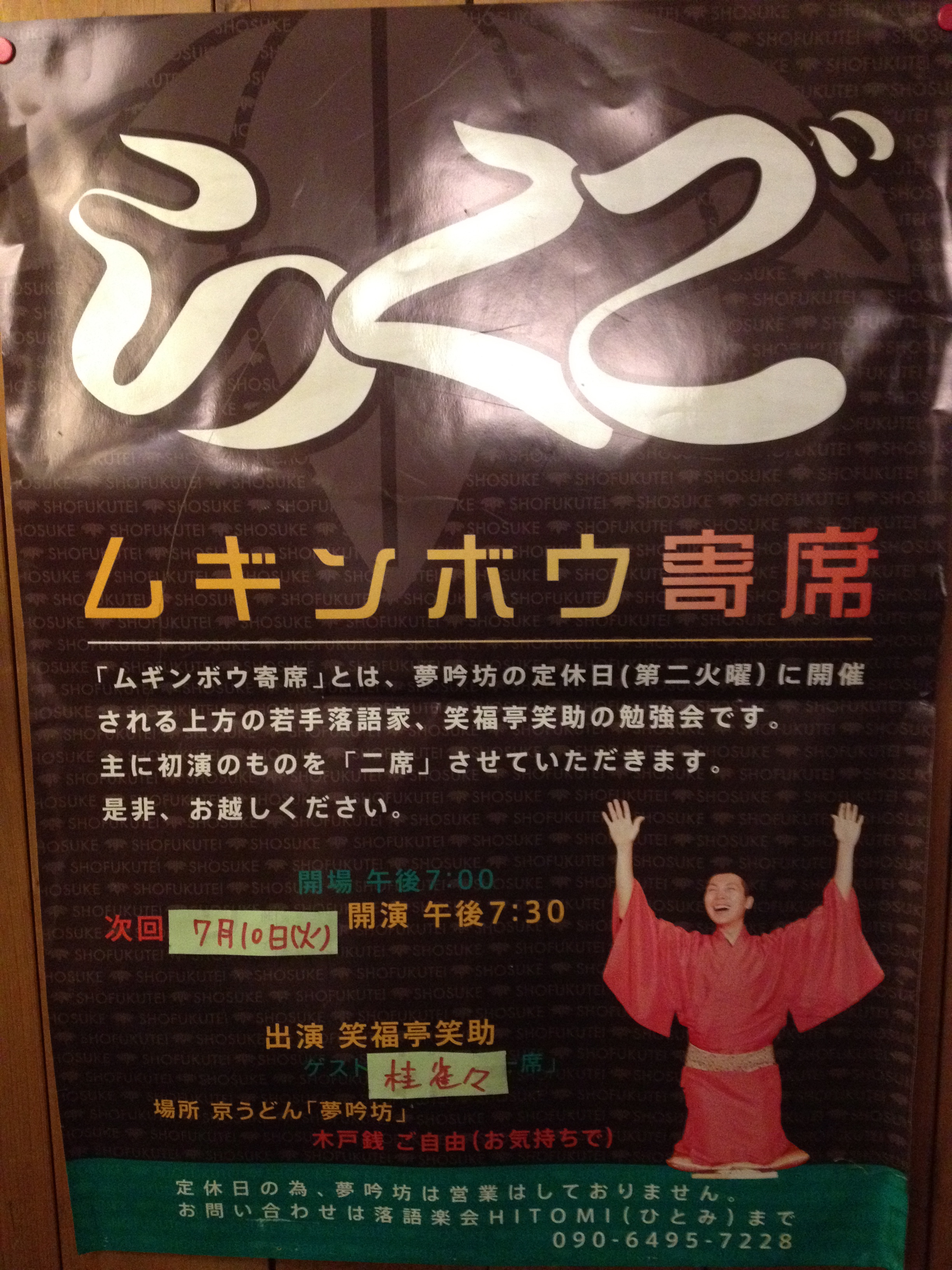2ヶ月に一回やってる三宿のうどんやさん夢吟坊で行われる寄席。