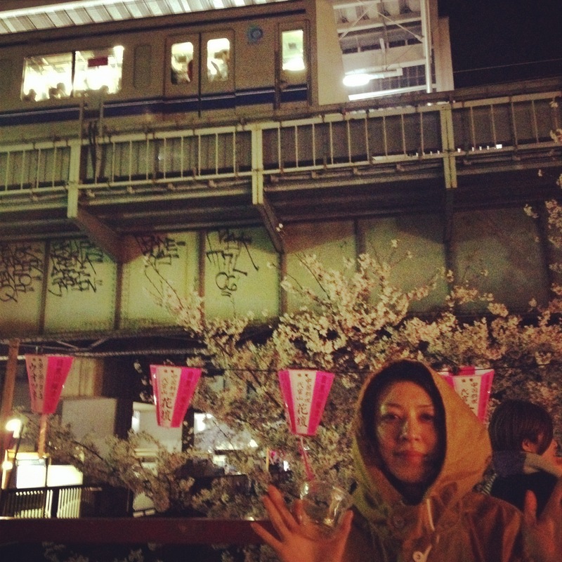 電車と桜と中目黒駅と私