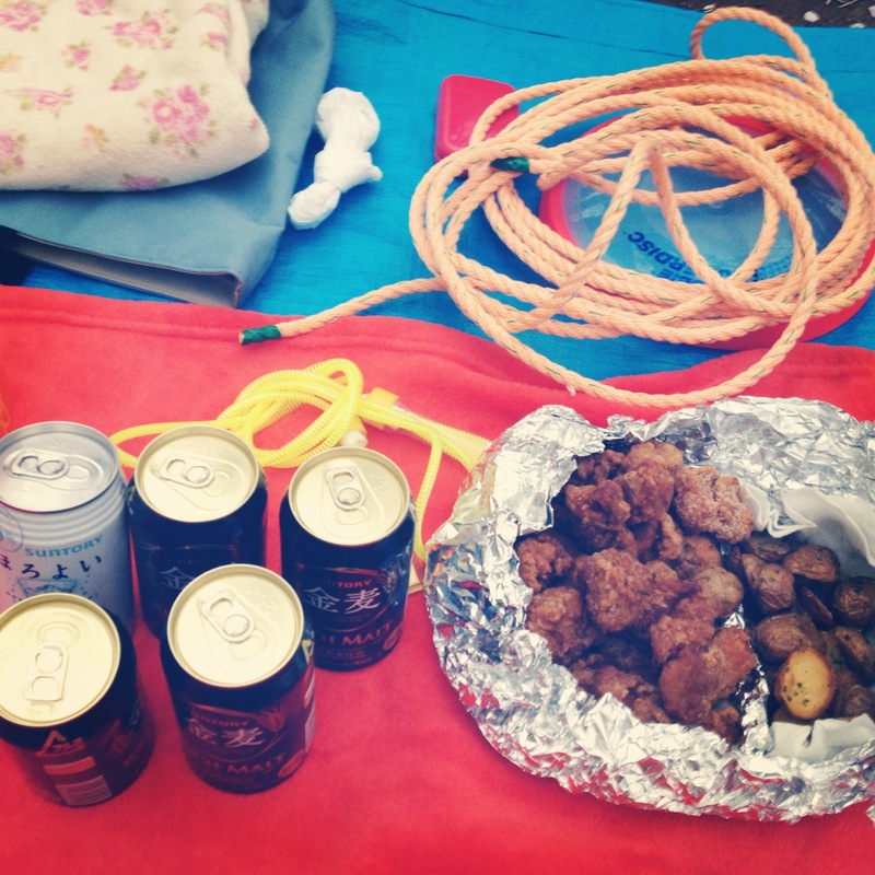 隣で大人数でやってたお花見の人達も一緒に大縄飛び