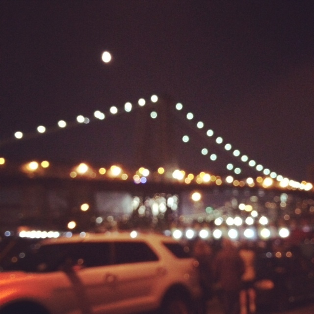 ハドソンリバー添いの夜道。ブルックリンからみる夜のマンハッタン。